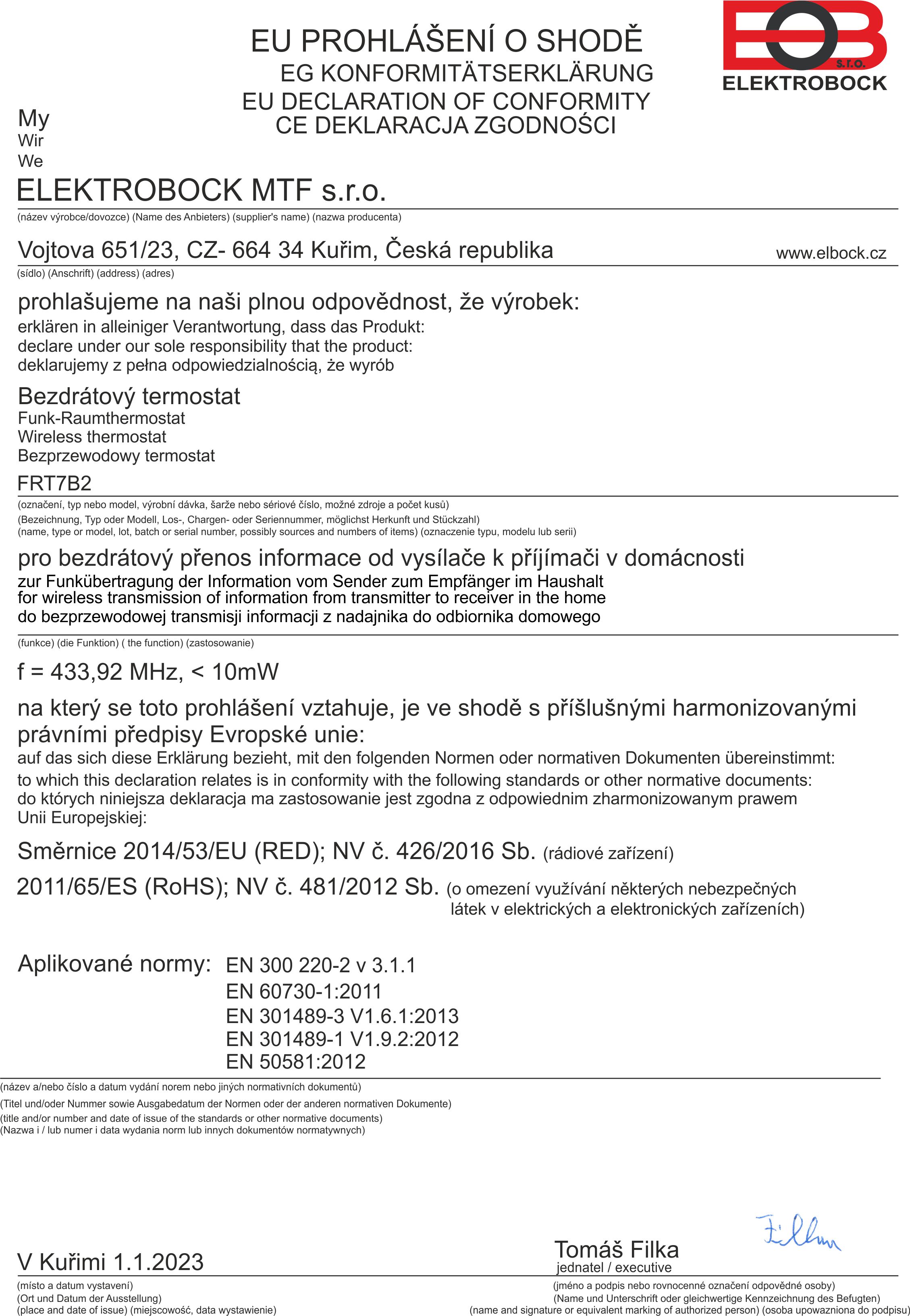FRT7B2 Prohlaseni o shode 720,28 kB stáhnout