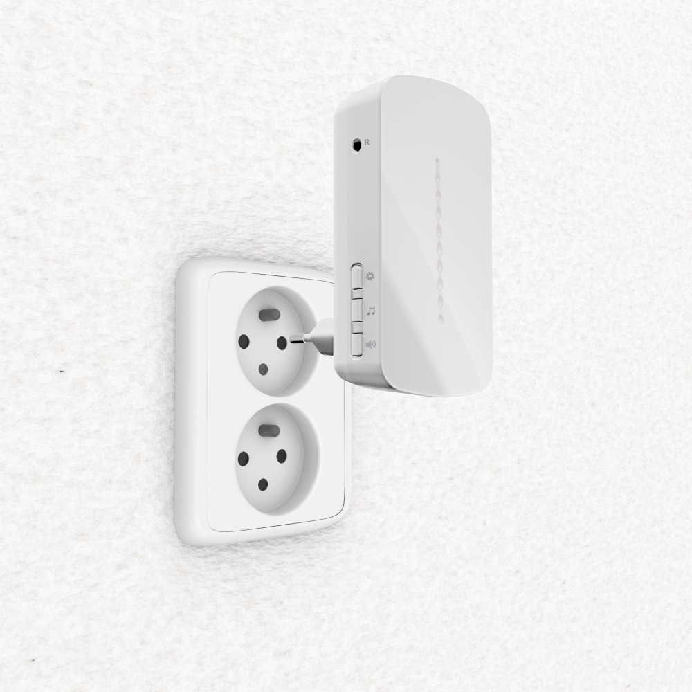 Bezdrátový zvonek s výběrem 36ti melodií, nastavitelnou hlasitostí a světelnou indikací na přijímači.