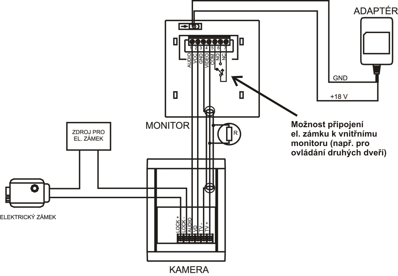 Tento dveřní videosystém má celkem 4 vodiče, lze ovšem použít i vodiče od existujícího domovního zvonku nebo komunikačního systému.