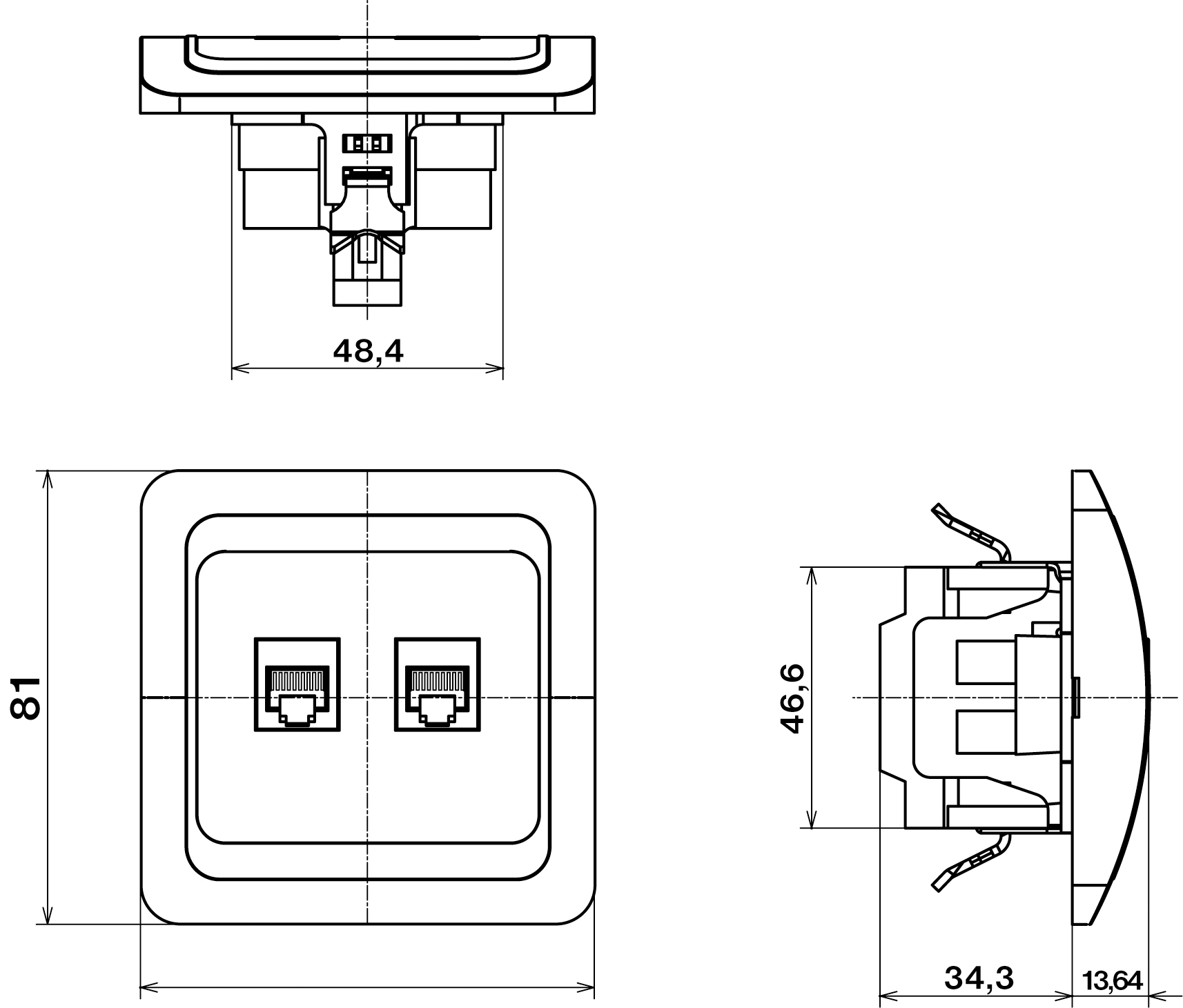 Dvojnásobná zásuvka telefonní - RJ11