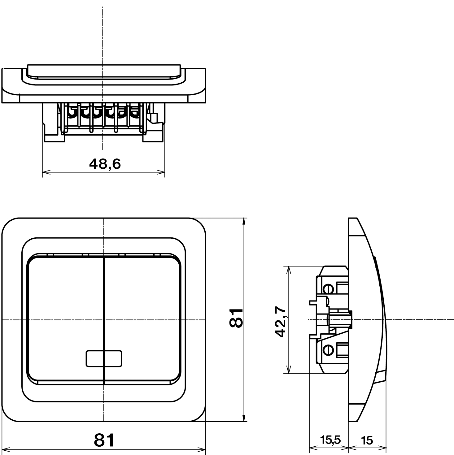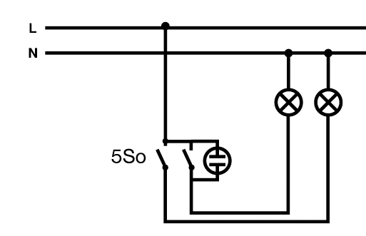 Umožňuje spínat/vypínat dvě svítidla z jednoho místa (doutnavka indikuje vypnutý stav pouze svítidla zapojeného na pravém ovládacím prvku).