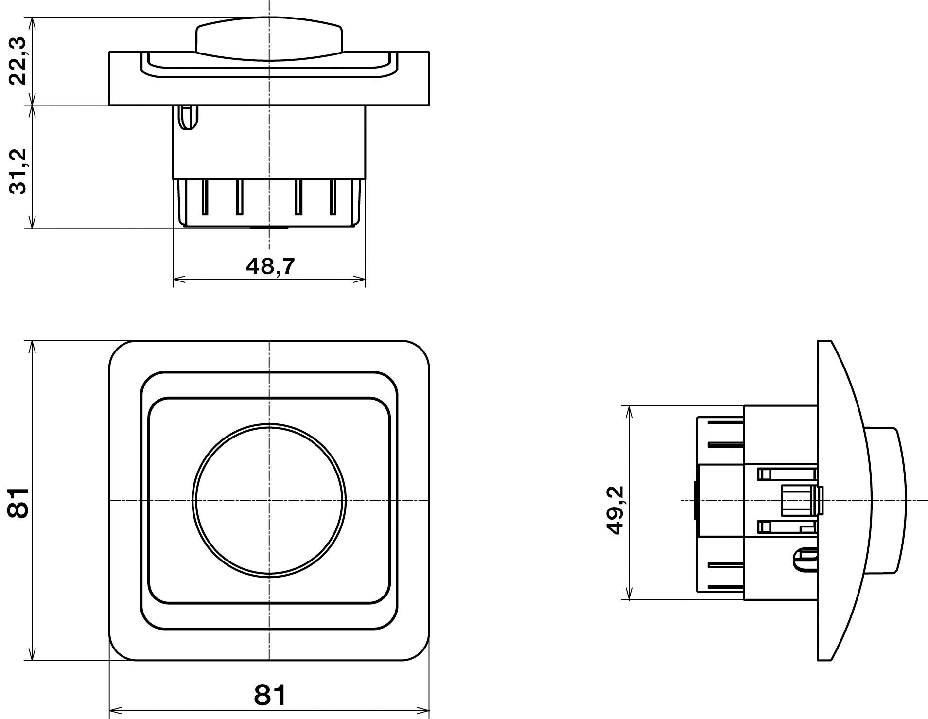 Pro regulaci intenzity osvětlení, stmívání HALOGENEK i ŽÁROVEK max.30-300VA (W). K vypnutí dojde otočením regul.prvku do levé krajní polohy.