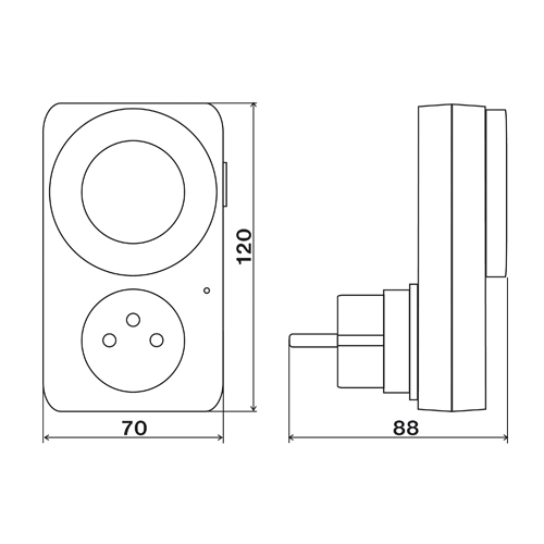 Pokud potřebujeme zapnout a vypnout spotřebič v určitém časovém rozmezí. Umožňuje funkci trvalého sepnutí zásuvky pomocí dvoupolohového přepínače. Tato funkce je indikována červenou LED diodou na čelní straně přístroje. Slouží pro časové spínání domácích spotřebičů (0–3500 W).