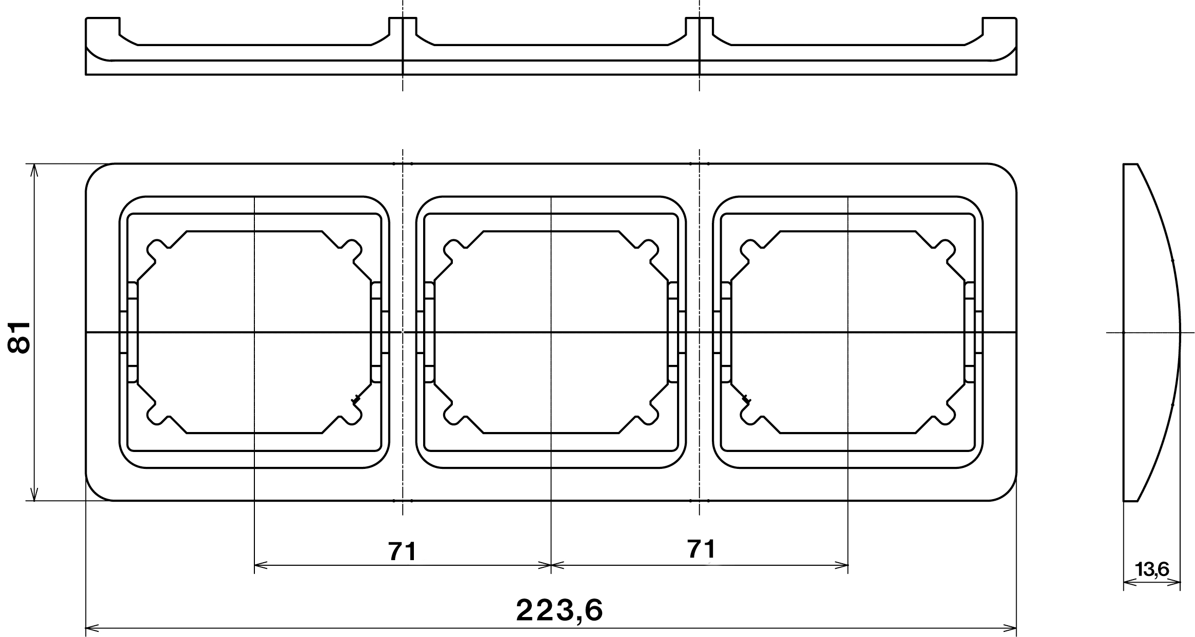 Trojnásobný vnější rámeček pro uložení tří přístrojů vedle sebe do vícenásobné inst.krabice.