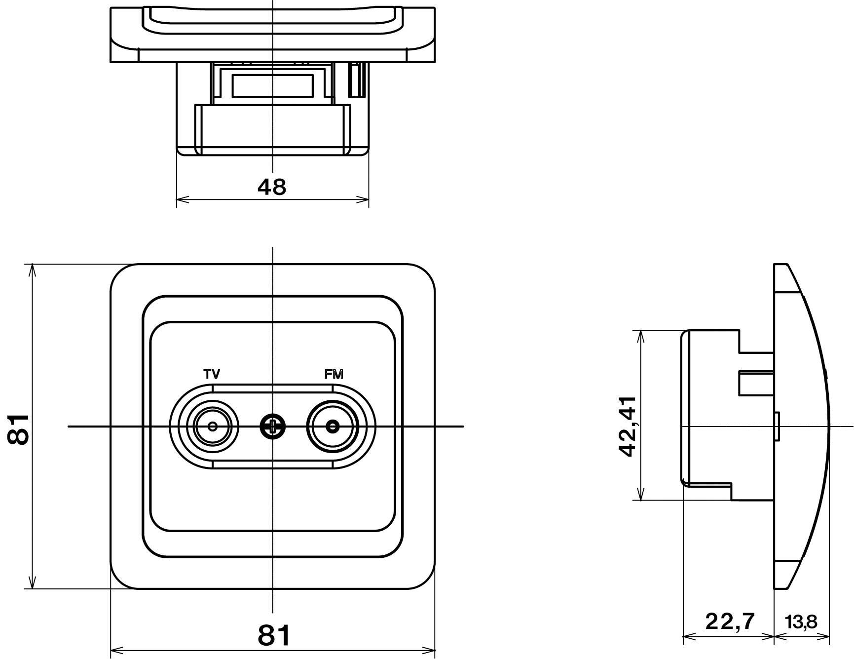 Anténní zásuvka pro TV a rádio (rozhlas).